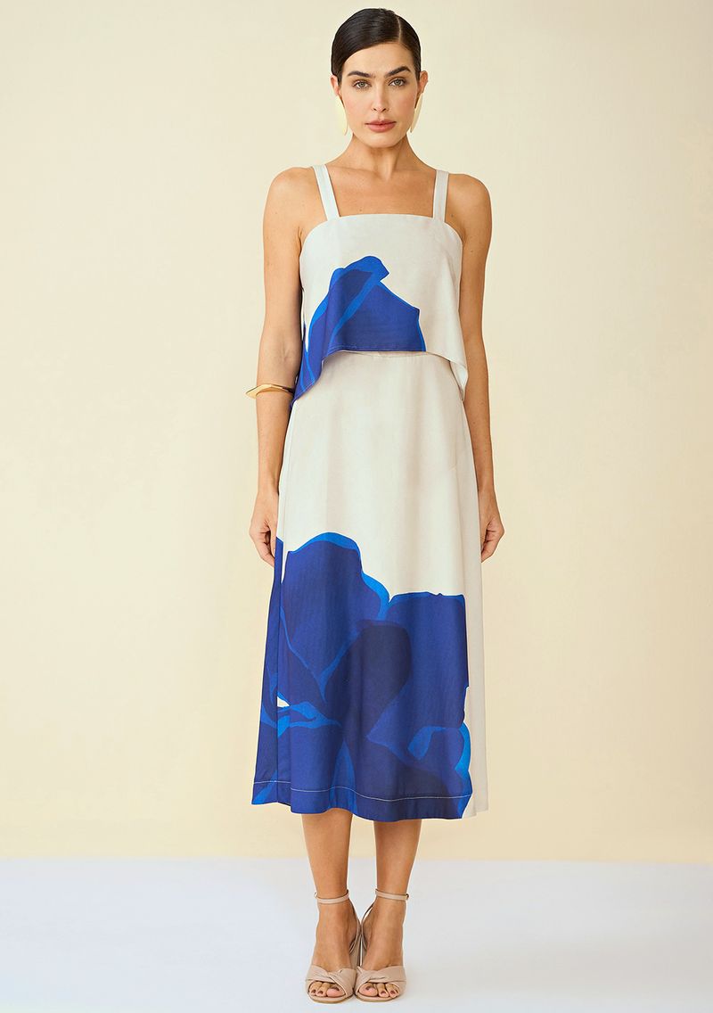 Vestido Maria.Valentina Midi Decote Reto Estampa Localizada Azul