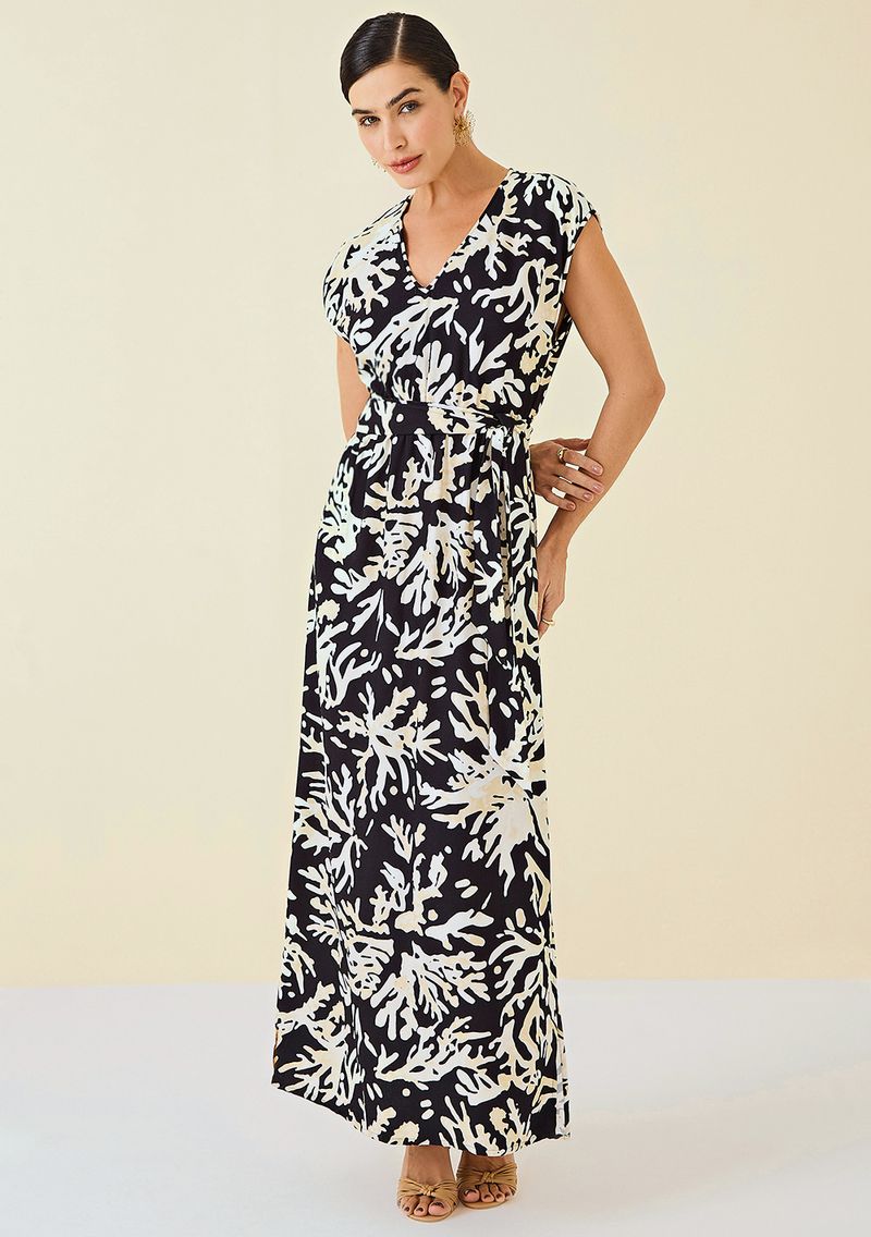 OUTLETFemininoRoupasVestidosVestido Maria.Valentina Midi Decote V Com Faixa Preto