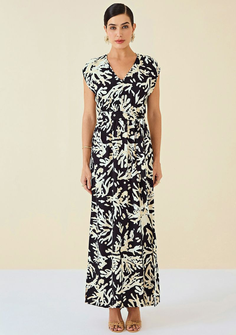 Vestido Maria.Valentina Midi Decote V Com Faixa Preto