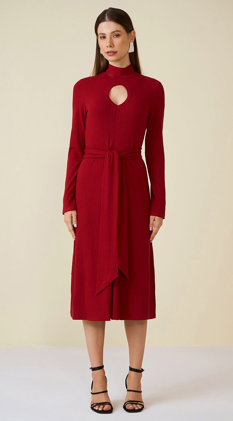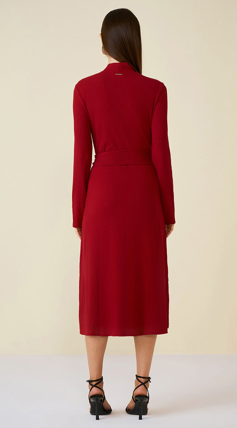 Vestido Maria.Valentina Midi Gola Alta Com Faixa Vermelho