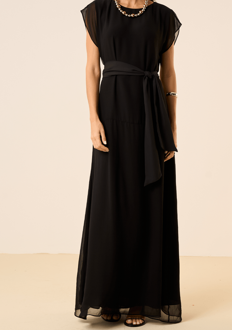 FemininoRoupasVestidosVestido Maria.Valentina Solto Decote Careca Manga Curta Longo Preto