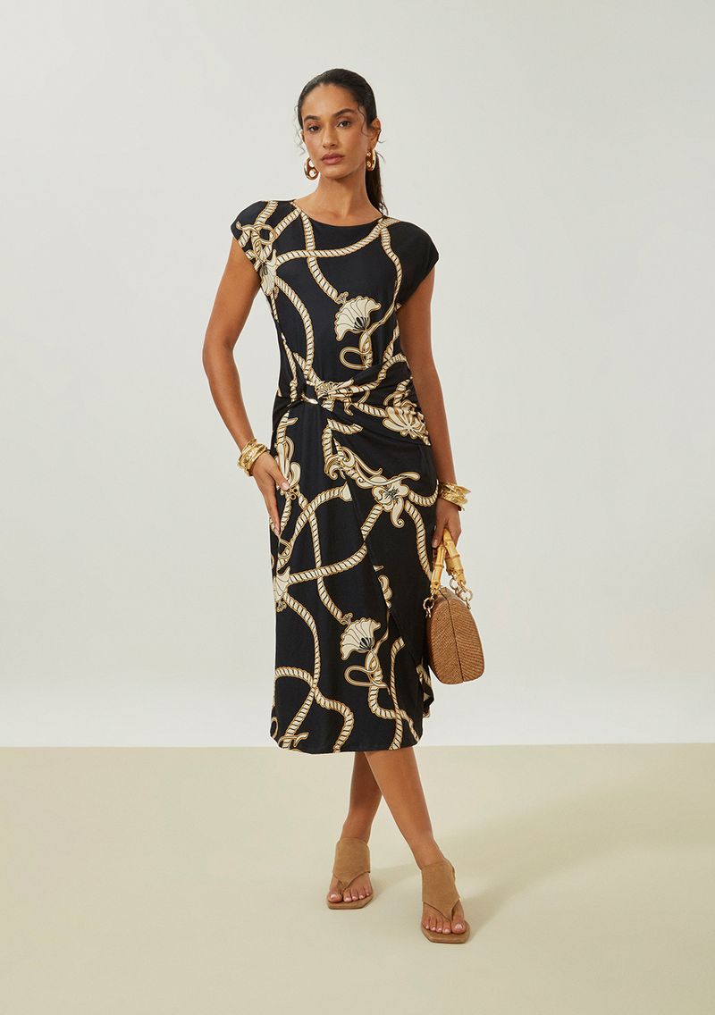 Vestido Maria.Valentina Solto Decote Careca Manga Curta Midi Preto
