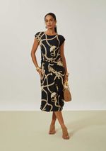 FemininoRoupasVestidosVestido Maria.Valentina Solto Decote Careca Manga Curta Midi Preto