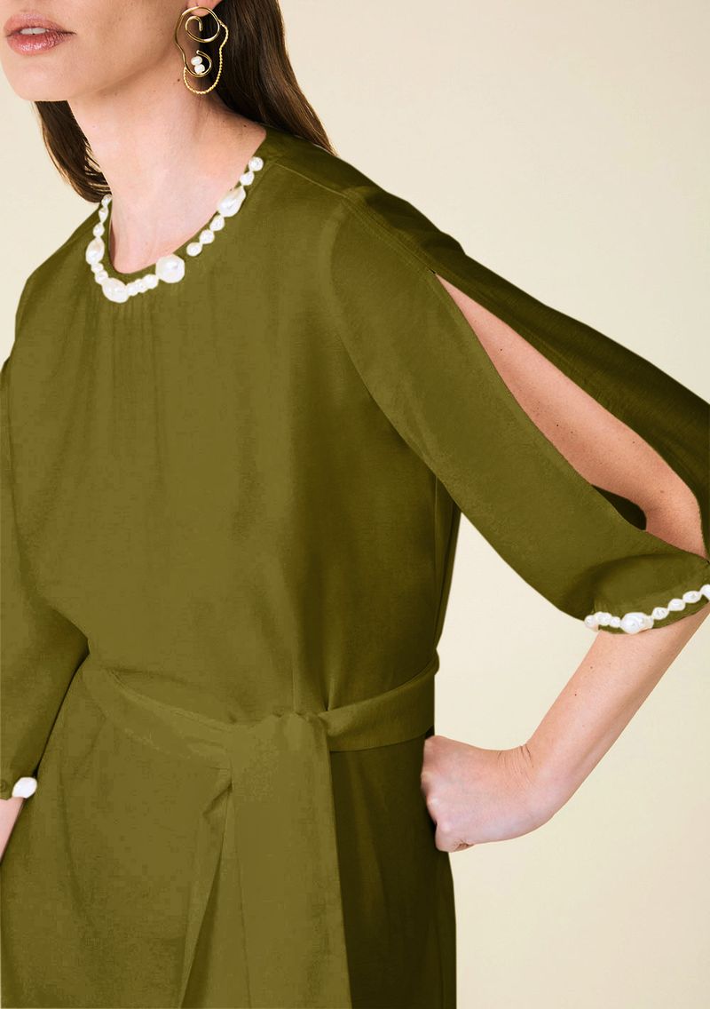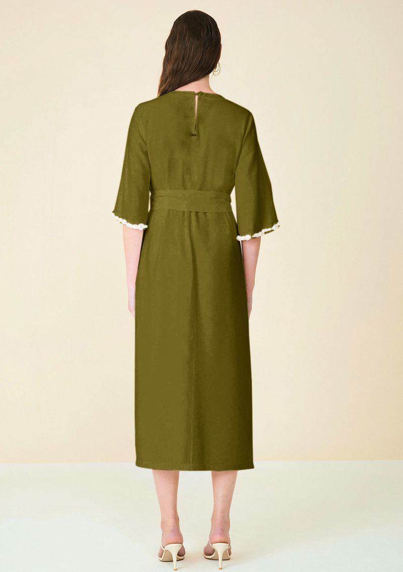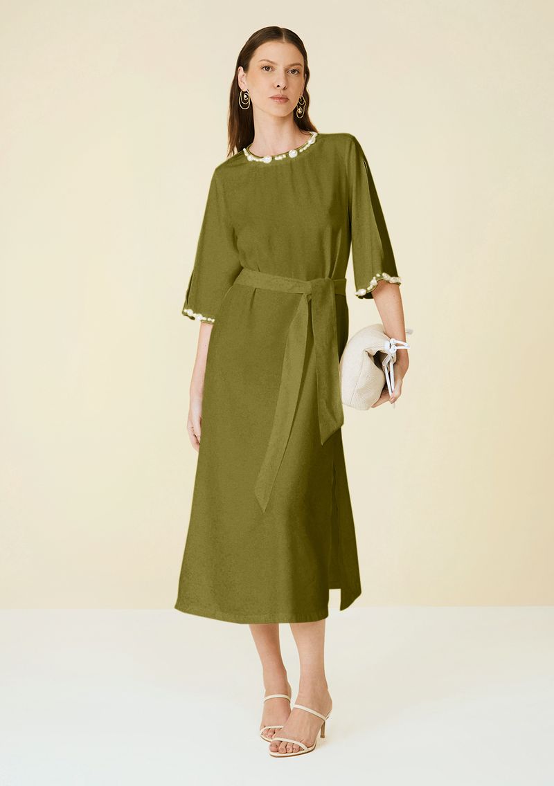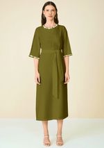 Vestido Maria.Valentina Solto Decote Careca Manga Curta Midi Verde