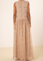 Vestido Maria.Valentina Solto Decote Careca Sem Manga Longo Bege