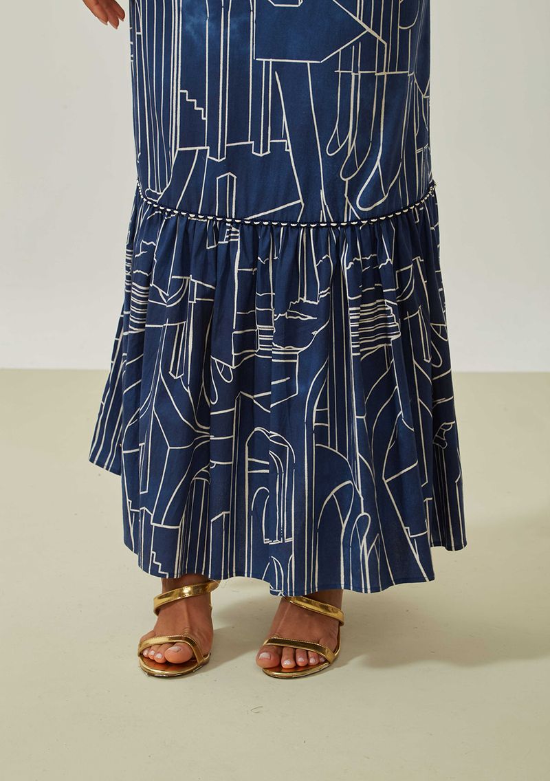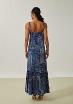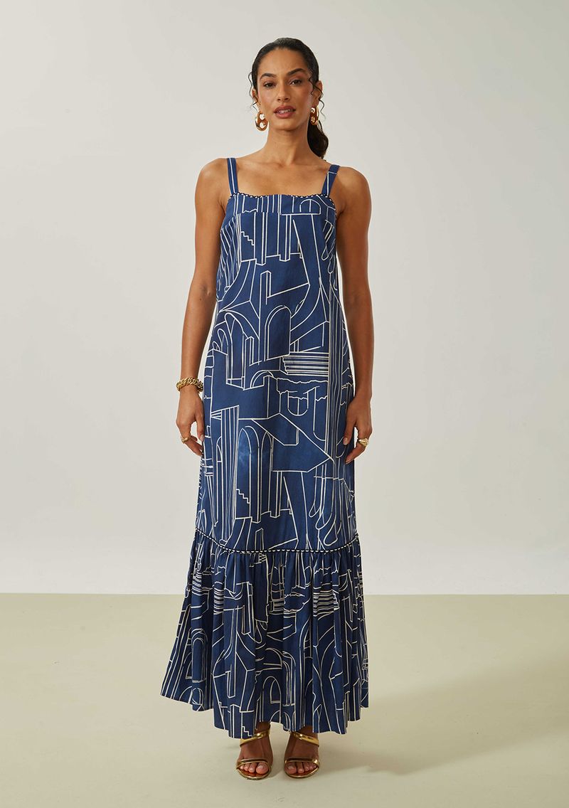Vestido Maria.Valentina Solto Decote Reto Com Alça Longo Azul