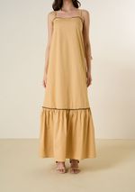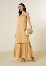 Vestido Maria.Valentina Solto Decote Reto Com Alça Longo Bege