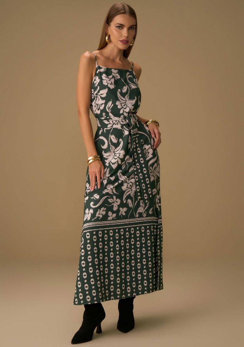 Vestido Maria.Valentina Solto Decote Reto Com Alça Longo Verde