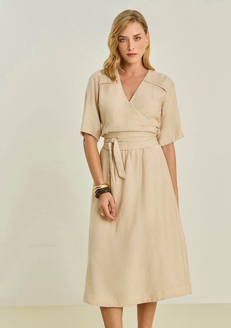 Vestido Maria.Valentina Solto Decote Transpassado Manga Longa Midi Marrom