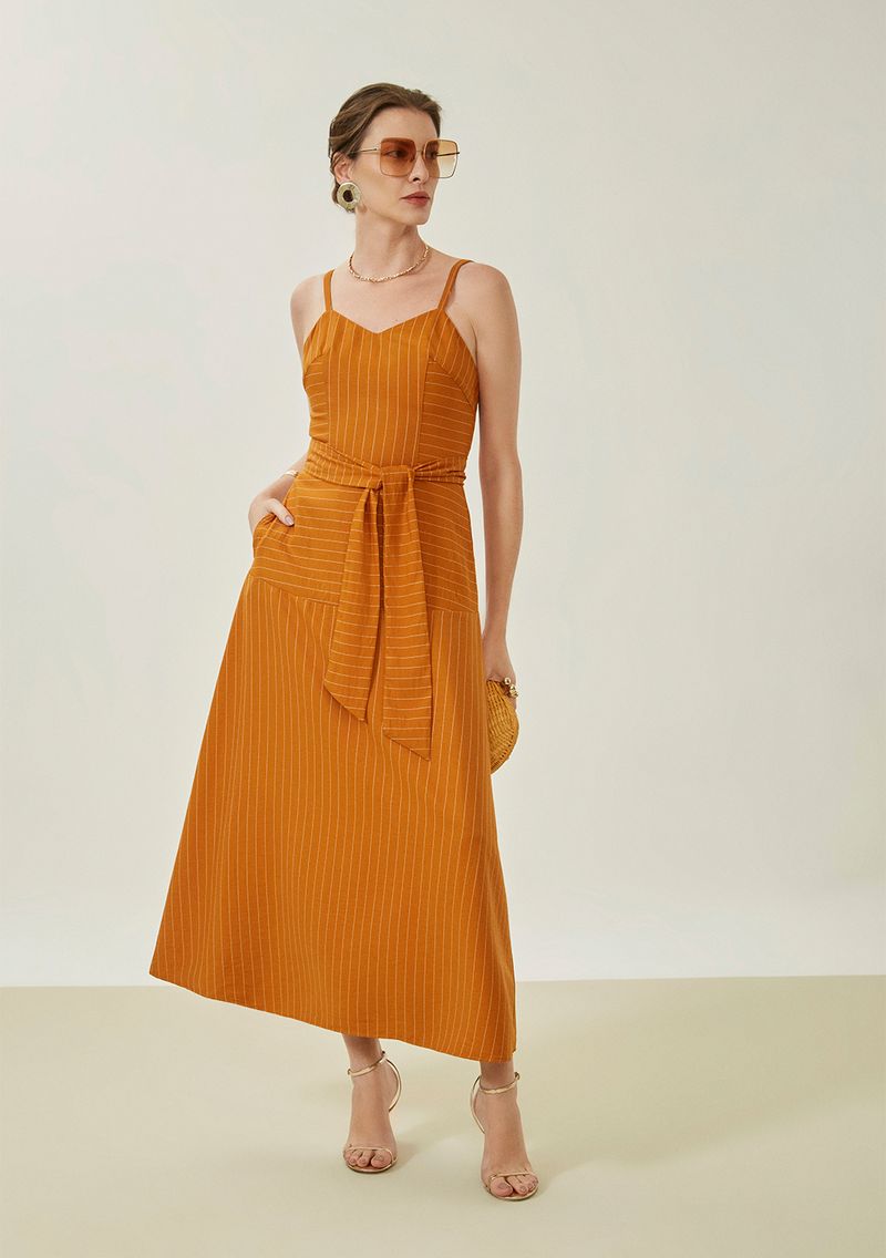 FemininoRoupasVestidosVestido Maria.Valentina Solto Decote V Com Alça Midi Marrom