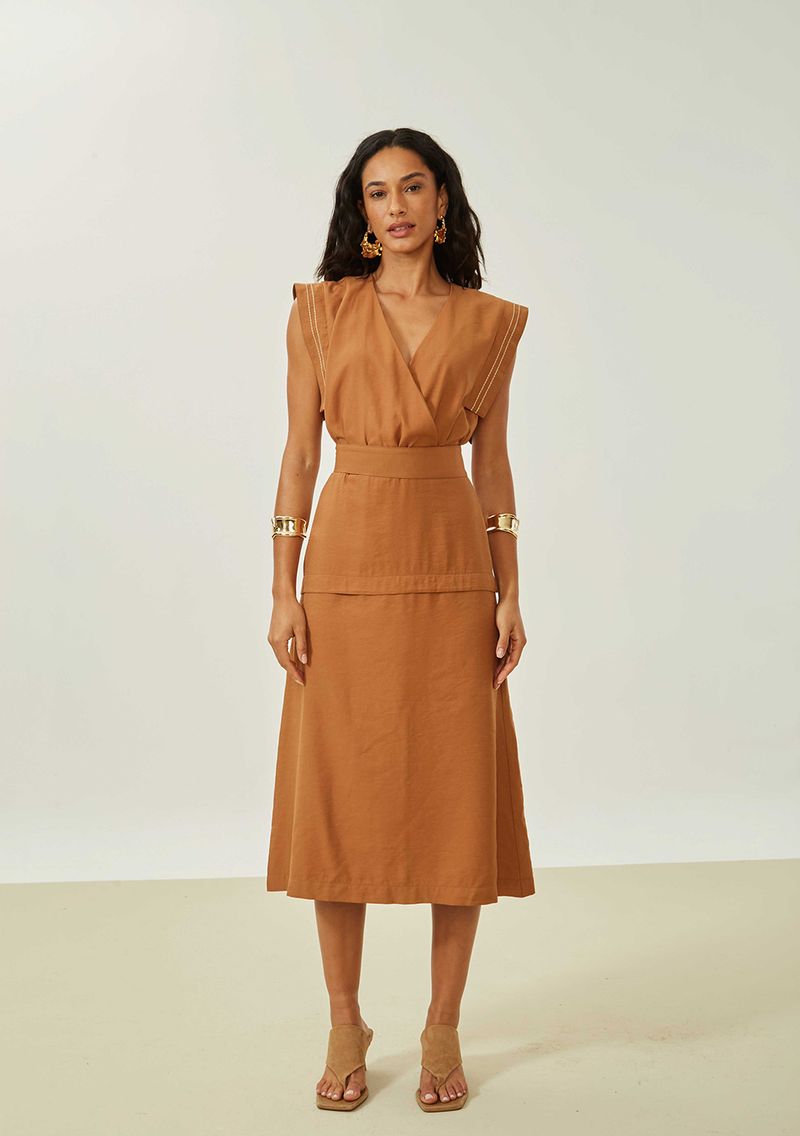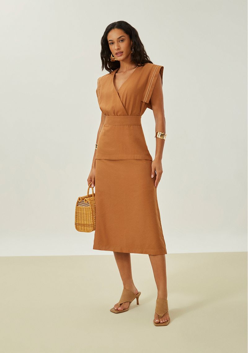FemininoRoupasVestidosVestido Maria.Valentina Solto Decote V Manga Curta Longo Marrom