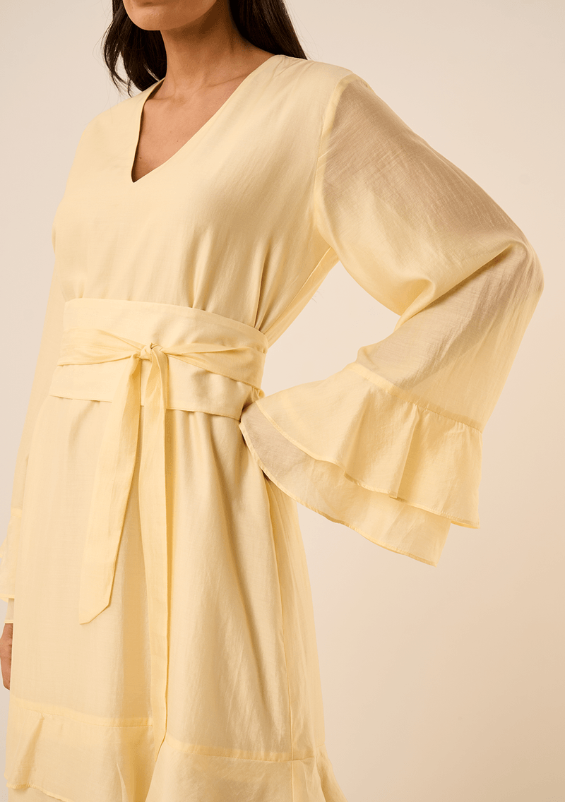 FemininoRoupasVestidosVestido Maria.Valentina Solto Decote V Manga Longa Longo Amarelo