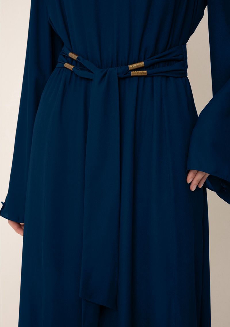 Vestido Maria.Valentina Solto Decote V Manga Longa Longo Azul Escuro