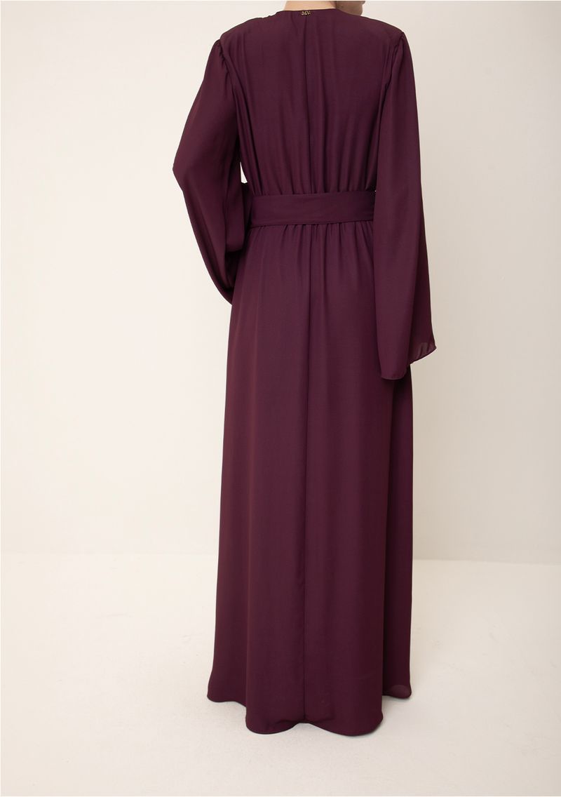 Vestido Maria.Valentina Solto Decote V Manga Longa Longo Bordo