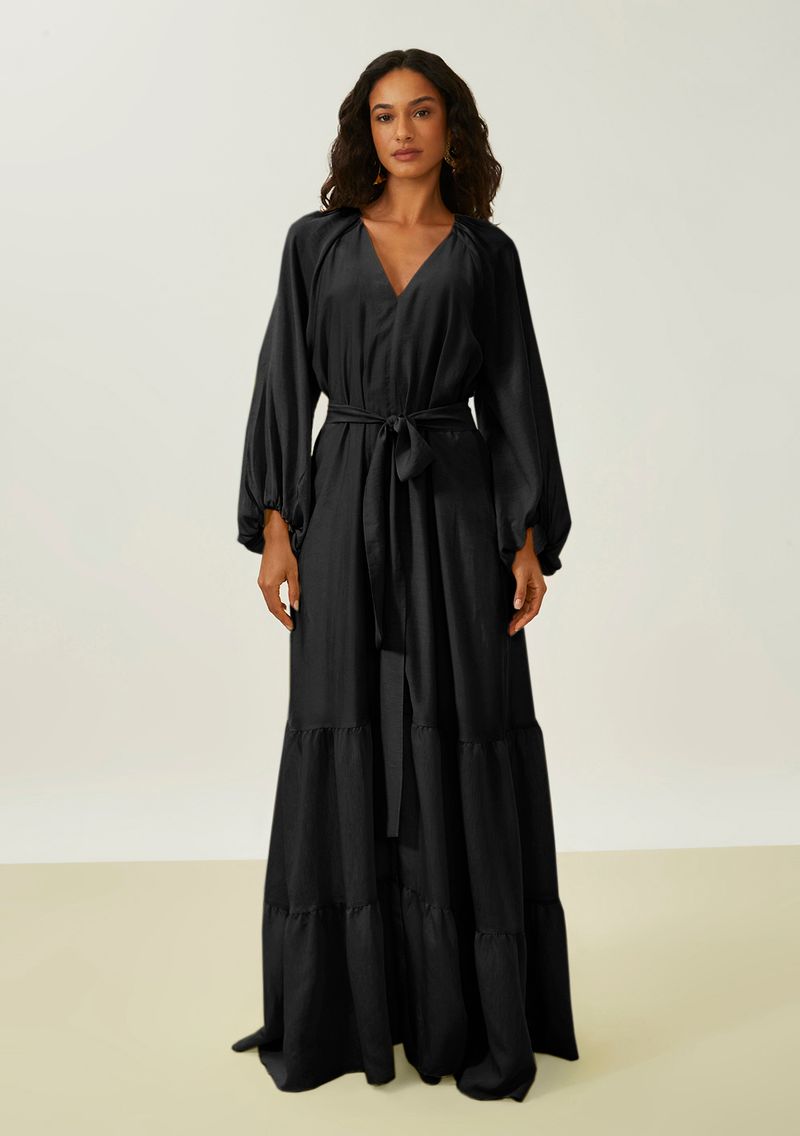 FemininoRoupasVestidosVestido Maria.Valentina Solto Decote V Manga Longa Longo Preto