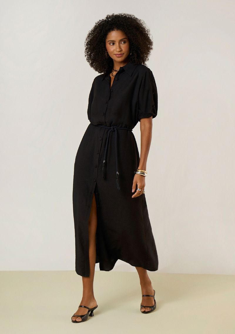 FemininoRoupasVestidosVestido Maria.Valentina Solto Gola Clássica Manga 7 Oitavos Longo Preto