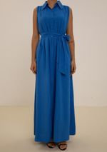 Vestido Maria.Valentina Solto Gola Clássica Sem Manga Longo Azul