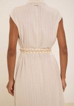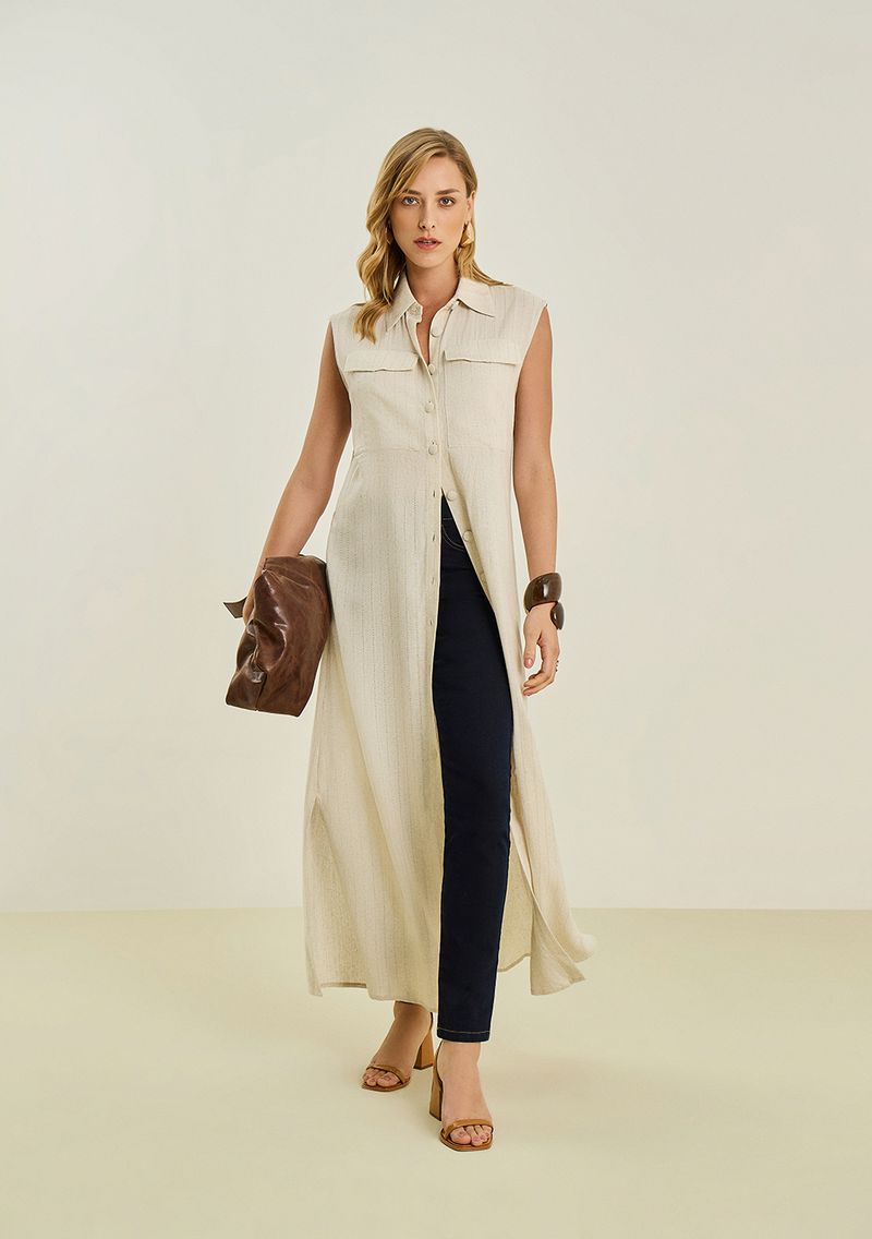 Vestido Maria.Valentina Solto Gola Clássica Sem Manga Longo Bege