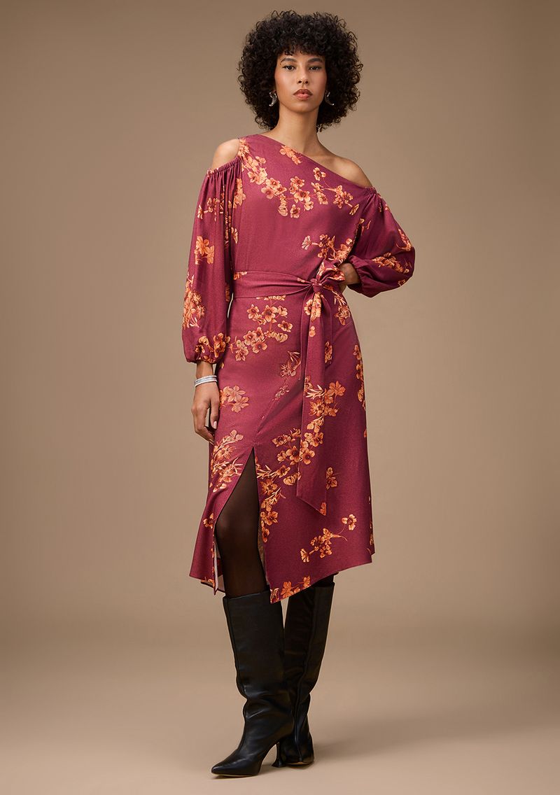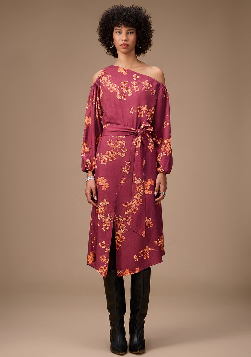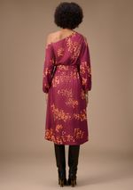 Vestido Maria.Valentina Solto Um Ombro Só Manga Longa Midi Bordo