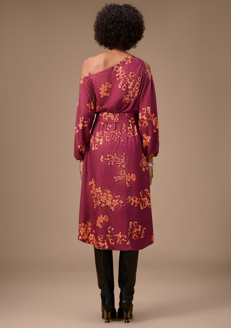 OUTLETFemininoRoupasVestidosVestido Maria.Valentina Solto Um Ombro Só Manga Longa Midi Bordo