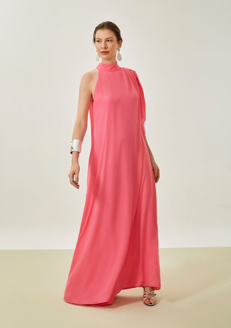 FemininoRoupasVestidosVestido Maria.Valentina Solto Um Ombro Só Sem Manga Longo Rosa