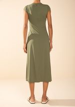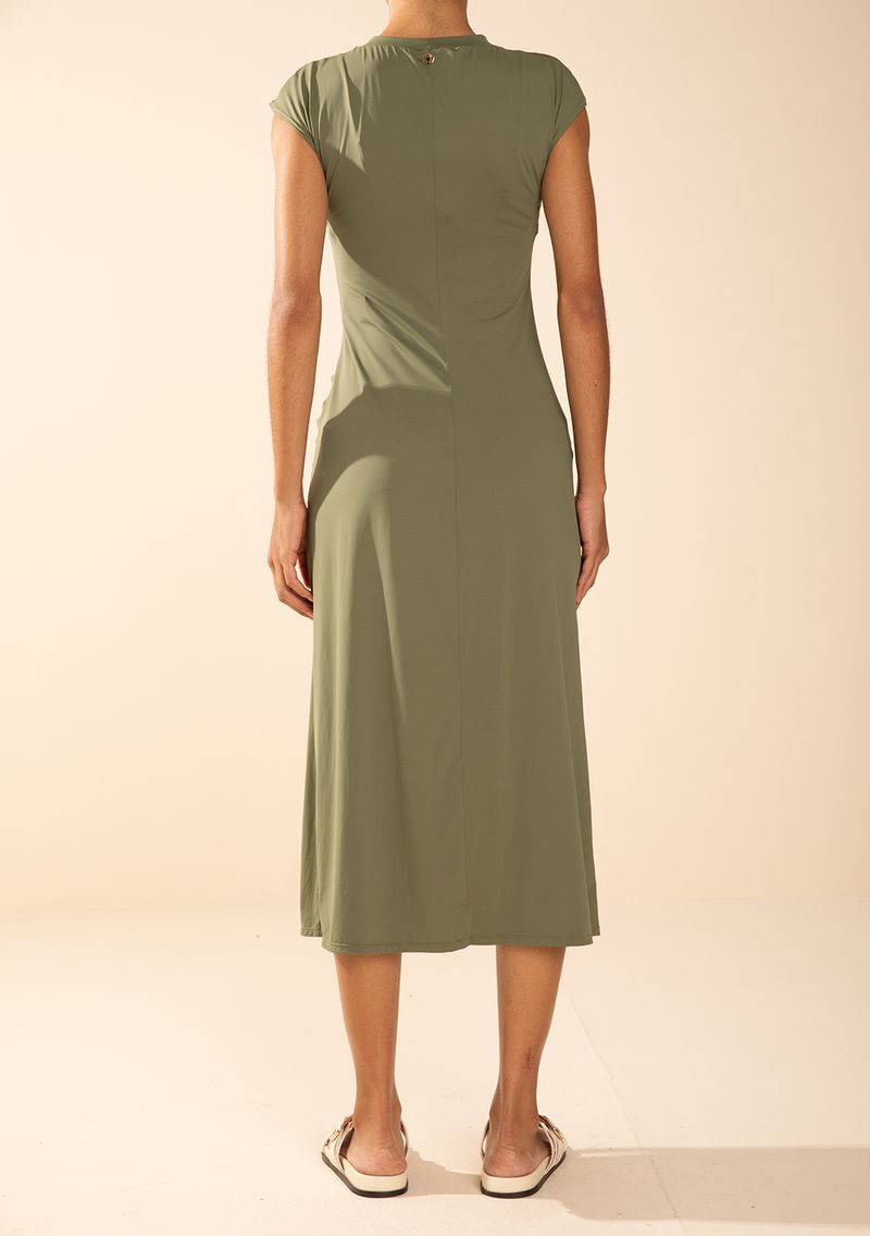 Vestido Morena Rosa Ajustado Decote Careca Sem Manga Midi Verde