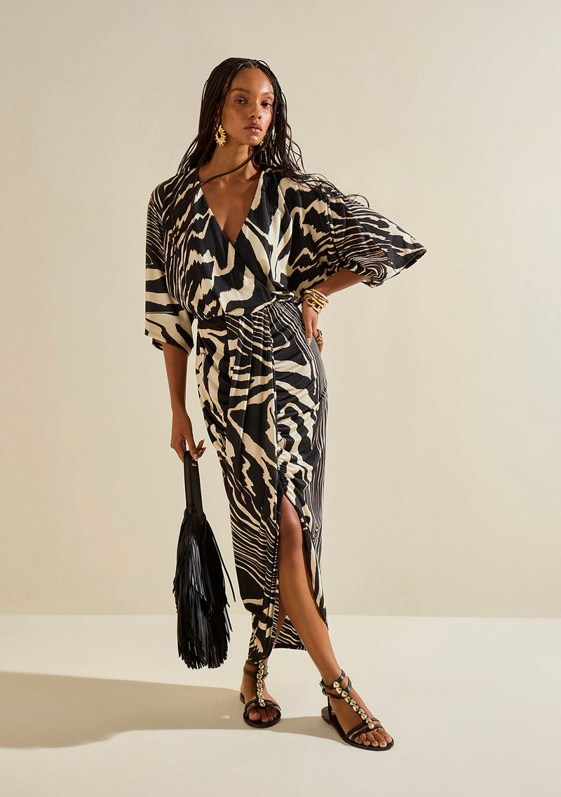 FemininoRoupasVestidosVestido Morena Rosa Ajustado Decote Costas Manga 3 Quartos Longo Preto