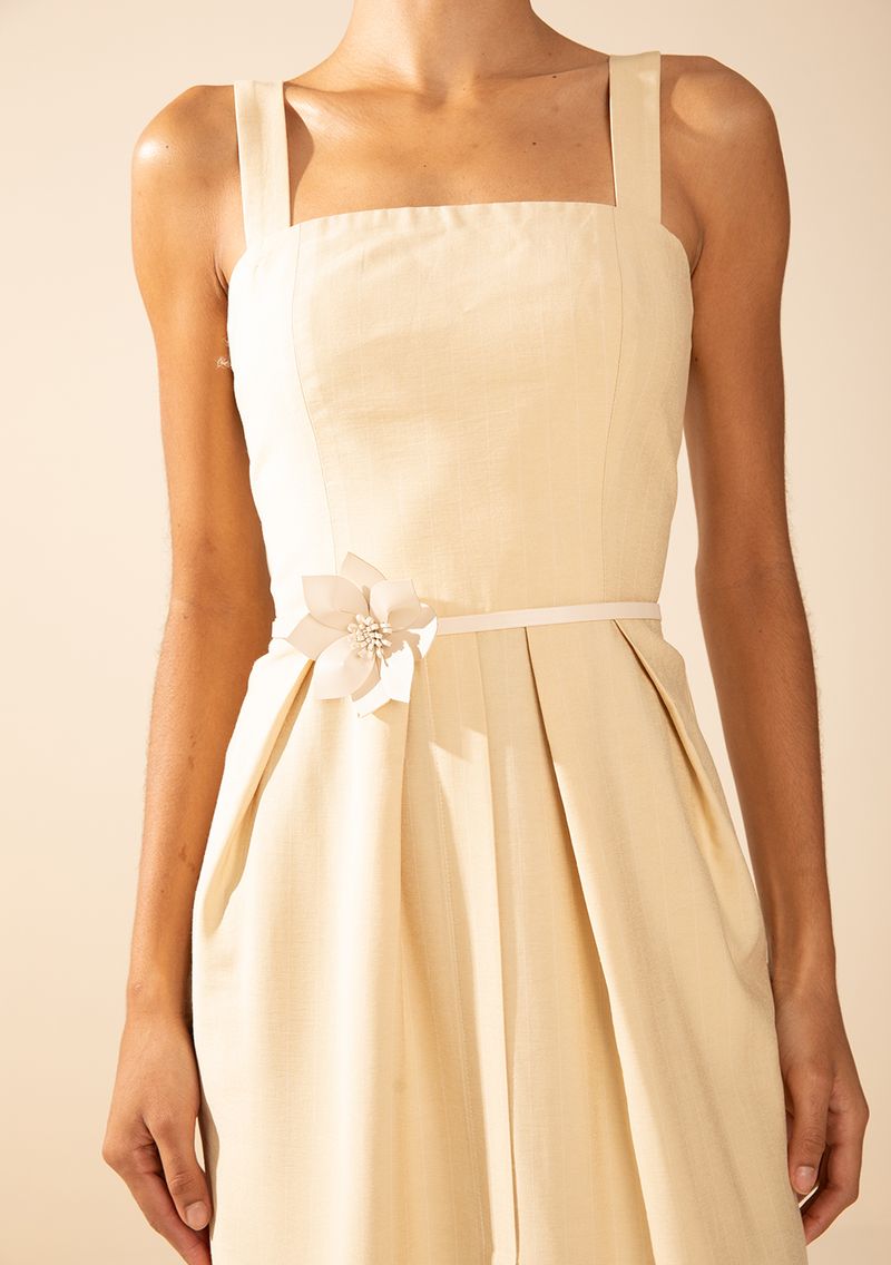 Vestido Morena Rosa Ajustado Decote Reto Com Alça Longo Amarelo
