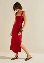 Vestido Morena Rosa Ajustado Decote Reto Com Alça Midi Vermelho