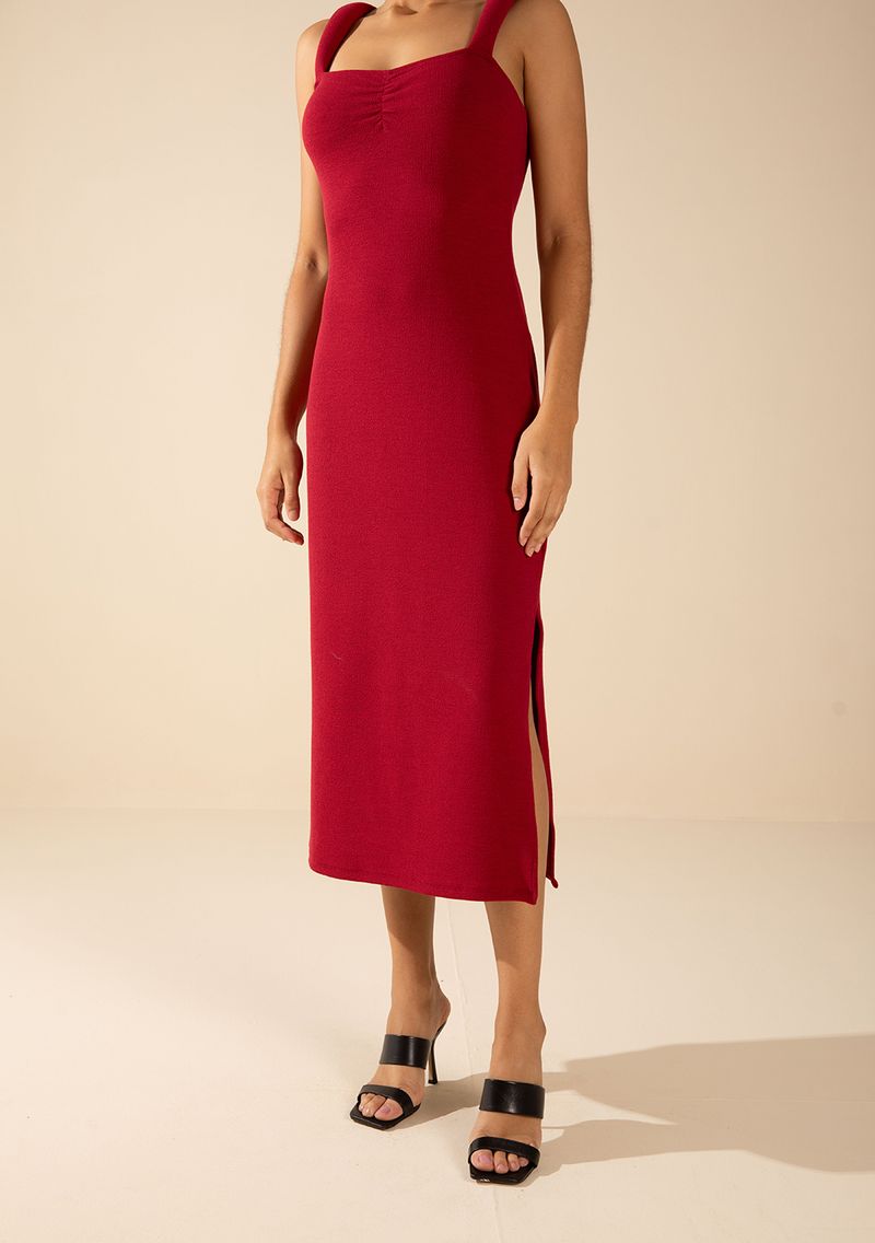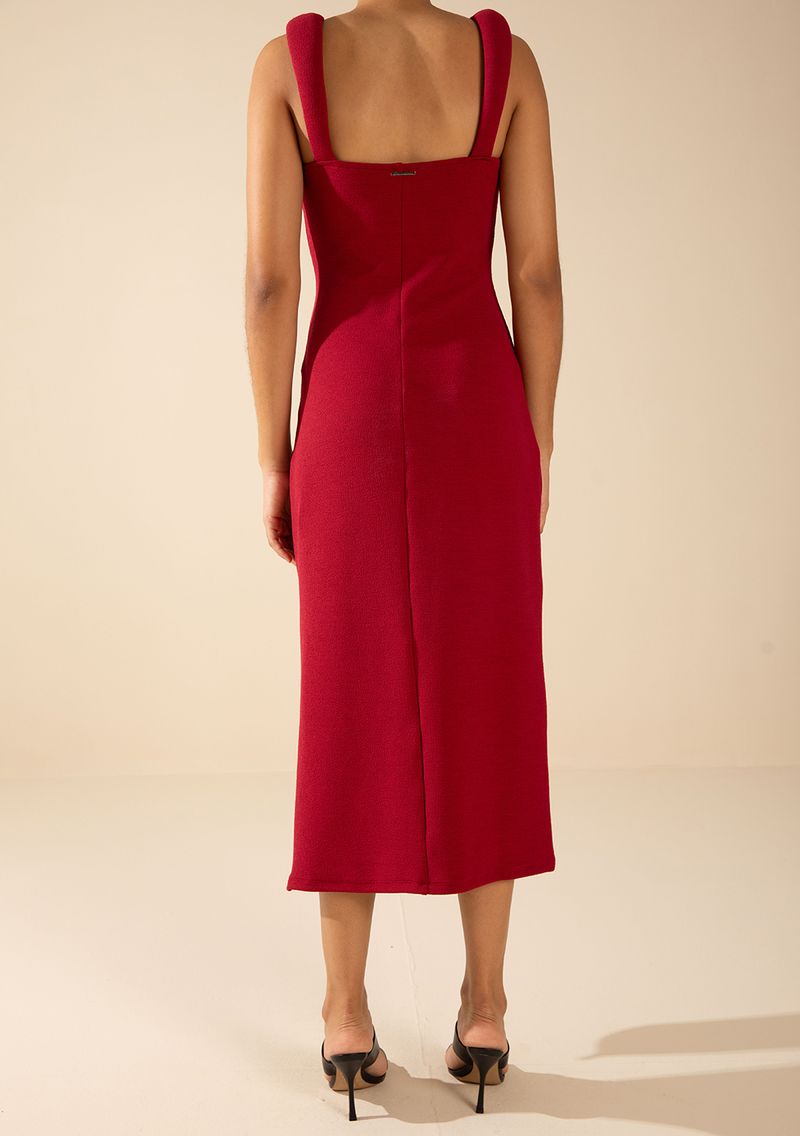 FemininoRoupasVestidosVestido Morena Rosa Ajustado Decote Reto Com Alça Midi Vermelho