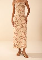 FemininoRoupasVestidosVestido Morena Rosa Ajustado Decote Reto Sem Alça Midi Bege