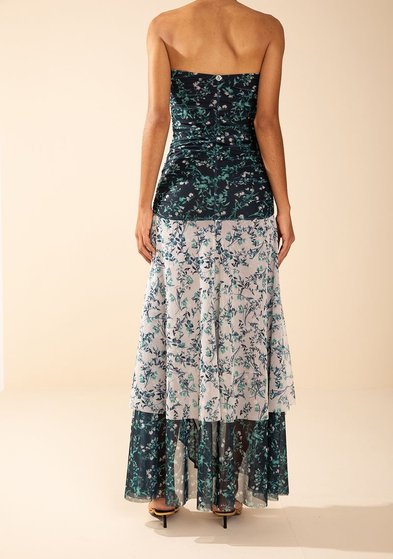 Vestido Morena Rosa Ajustado Decote Reto Sem Manga Longo Azul