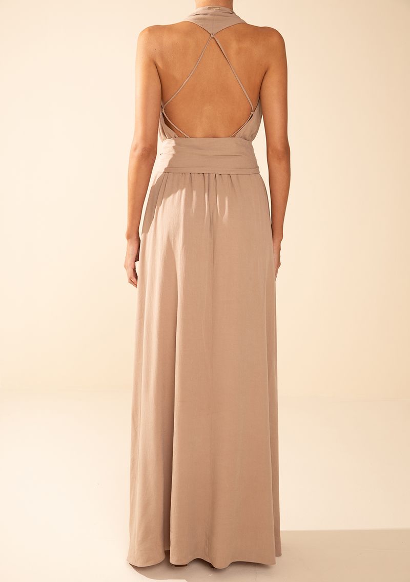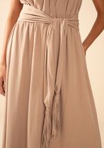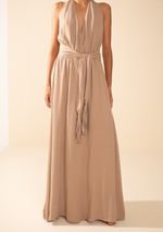 Vestido Morena Rosa Ajustado Decote Transpassado Sem Manga Longo Marrom