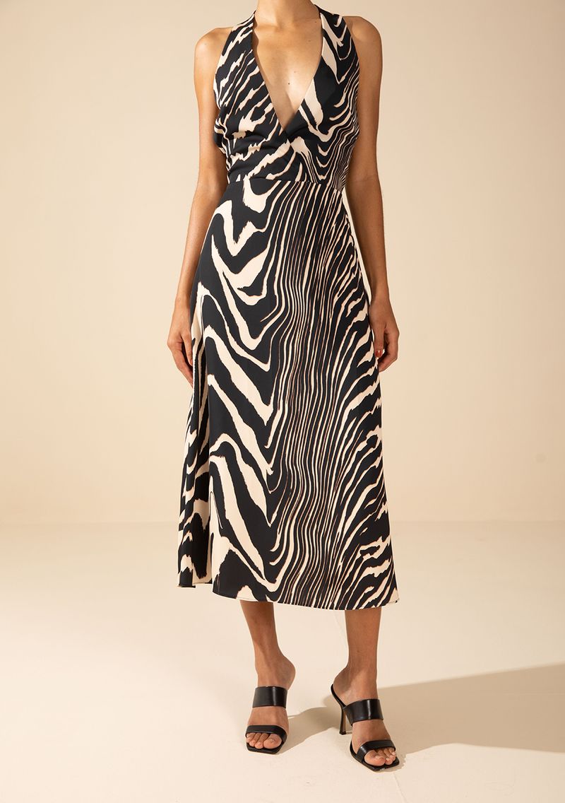 FemininoRoupasVestidosVestido Morena Rosa Ajustado Decote Transpassado Sem Manga Midi Preto