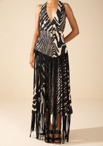 Vestido Morena Rosa Ajustado Decote Transpassado Sem Manga Midi Preto