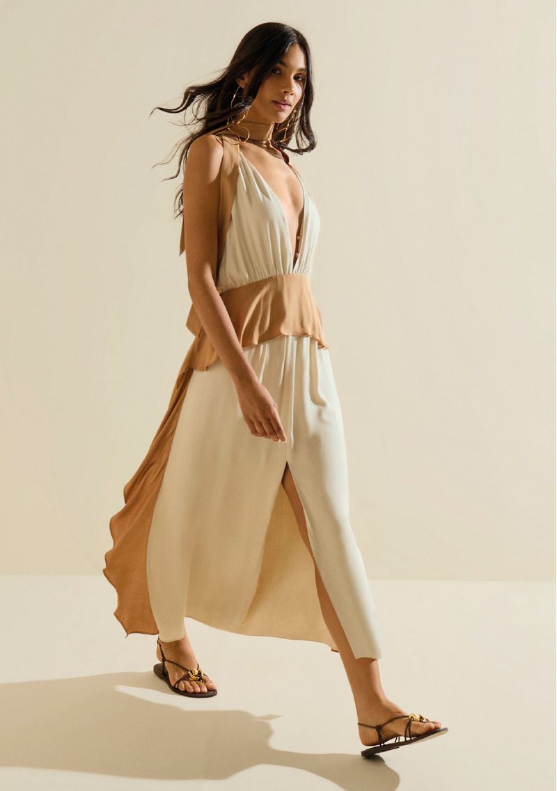 FemininoRoupasVestidosVestido Morena Rosa Ajustado Decote V Com Alça Midi Bege