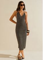 Vestido Morena Rosa Ajustado Decote V Com Alça Midi Preto