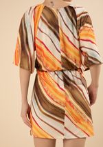 Vestido Morena Rosa Ajustado Decote V Manga 3 Quartos Curto Laranja