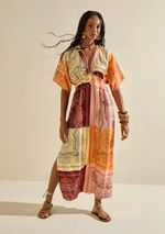 Vestido Morena Rosa Ajustado Decote V Manga Curta Longo Amarelo