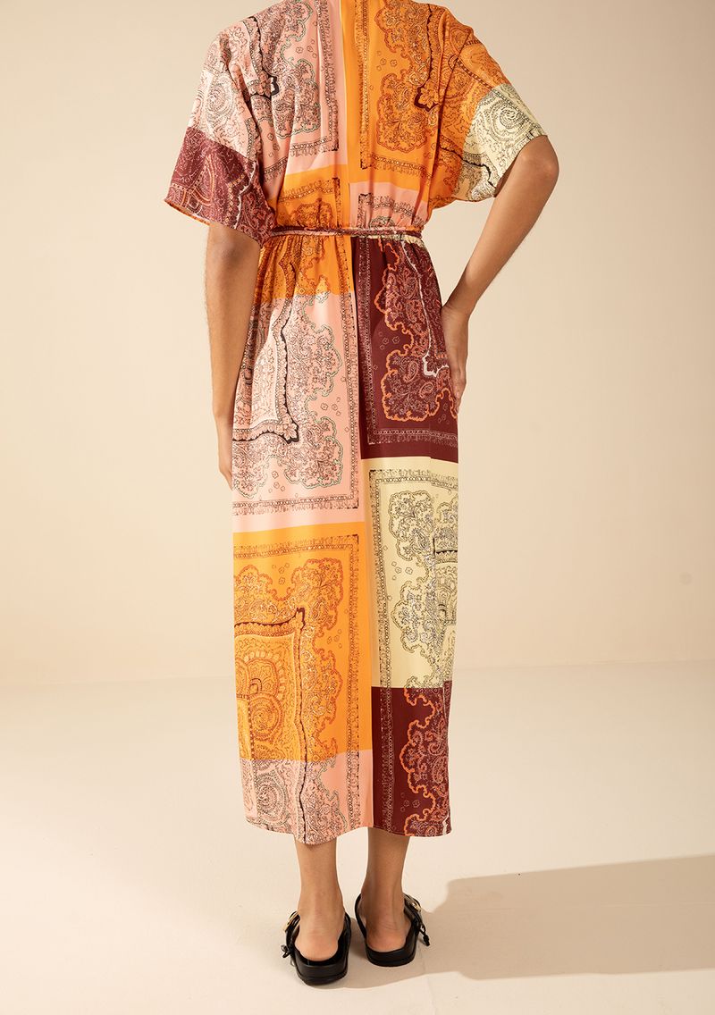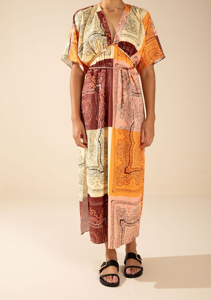 FemininoRoupasVestidosVestido Morena Rosa Ajustado Decote V Manga Curta Longo Amarelo