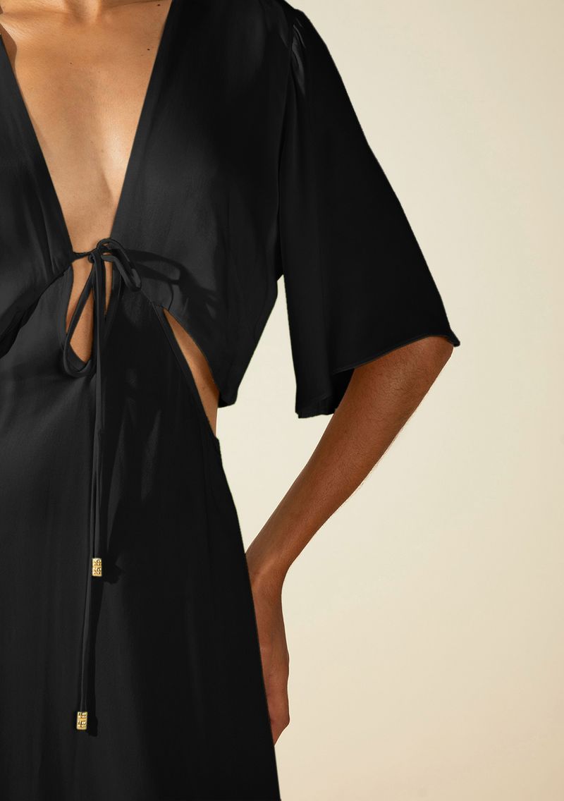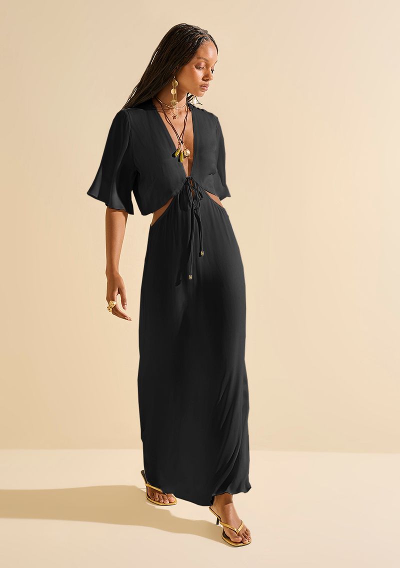 FemininoRoupasVestidosVestido Morena Rosa Ajustado Decote V Manga Curta Longo Preto