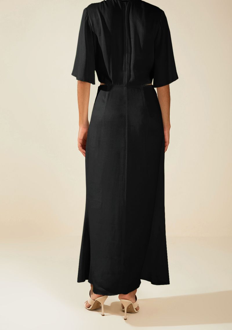 Vestido Morena Rosa Ajustado Decote V Manga Curta Longo Preto