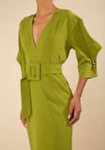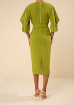 Vestido Morena Rosa Ajustado Decote V Manga Longa Midi Verde