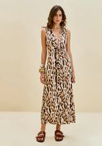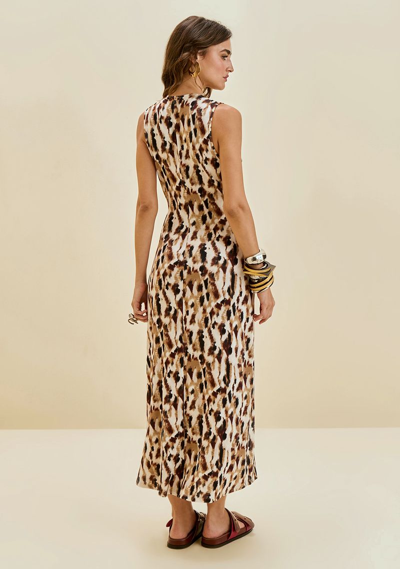 Vestido Morena Rosa Ajustado Decote V Sem Manga Longo Marrom