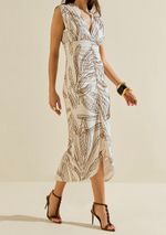 Vestido Morena Rosa Ajustado Decote V Sem Manga Midi Off White