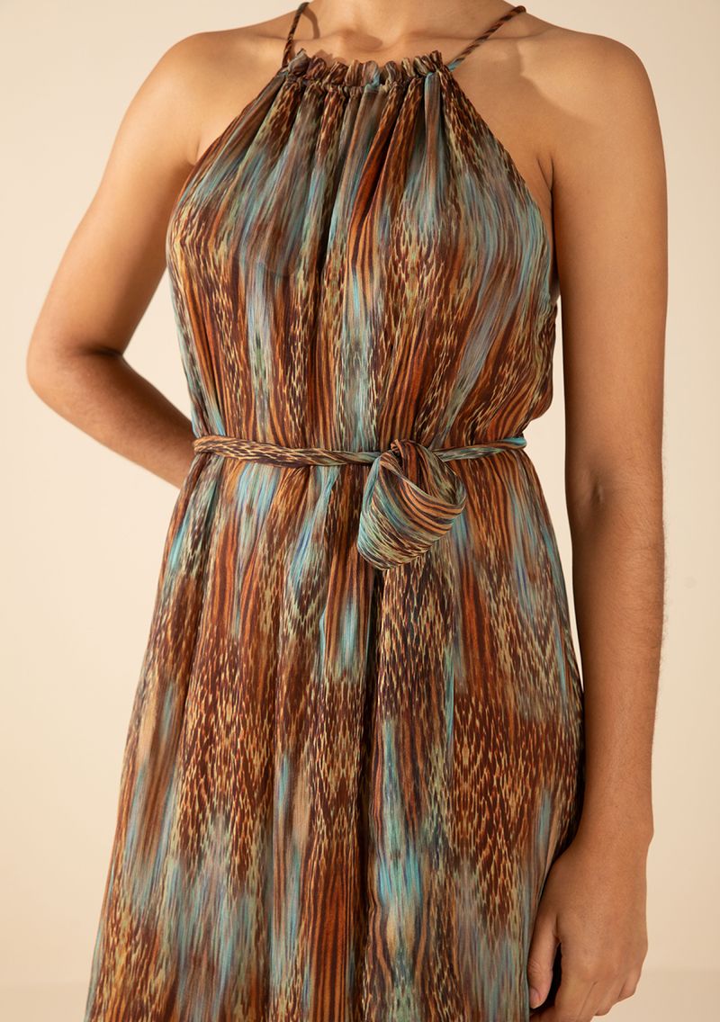 Vestido Morena Rosa Solto Cava Francesa Sem Manga Longo Marrom