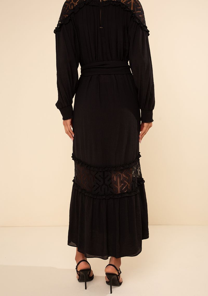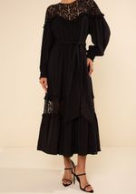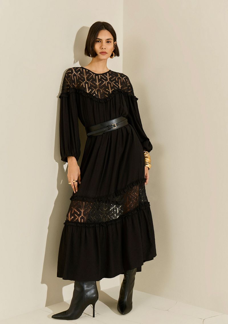 Vestido Morena Rosa Solto Decote Careca Manga Longa Midi Preto