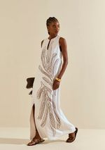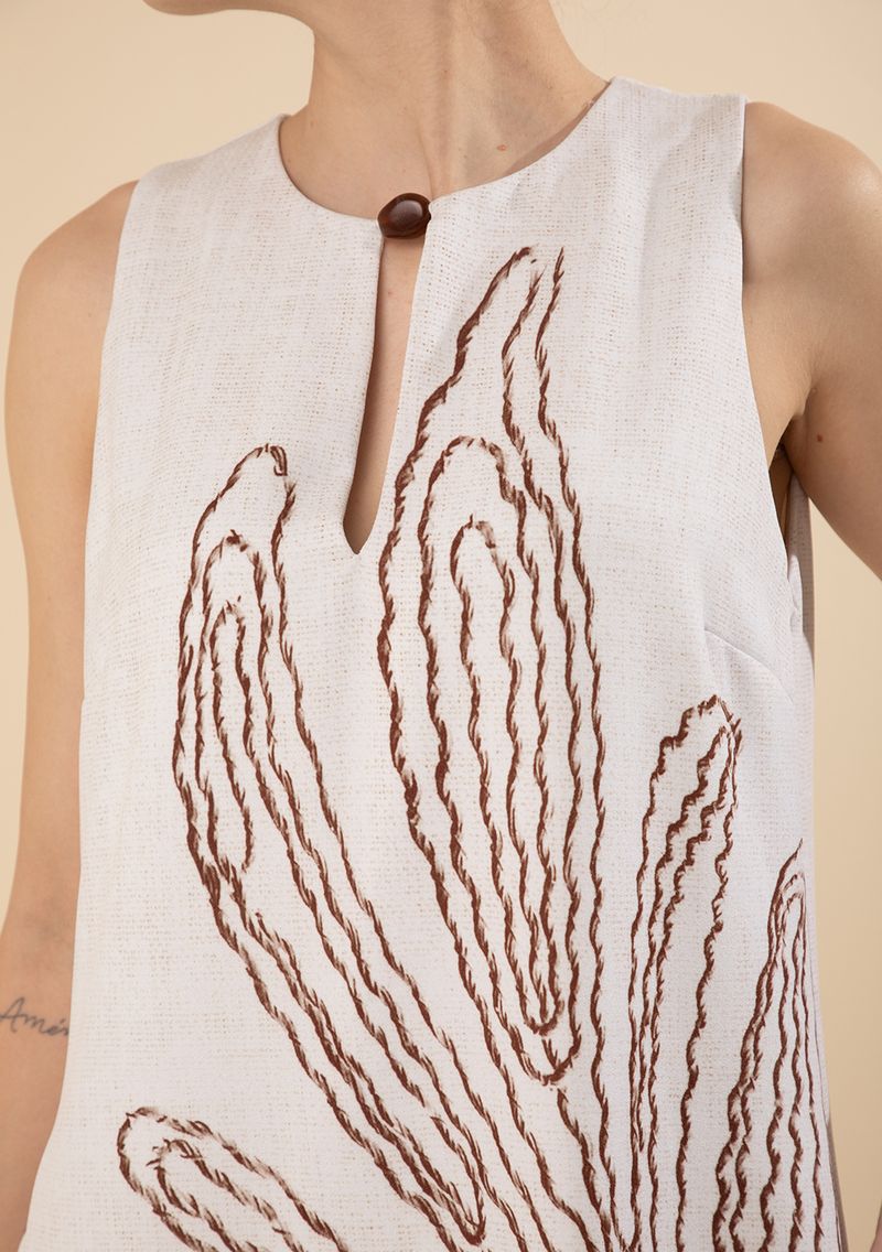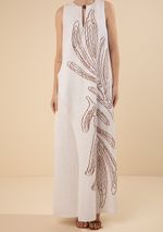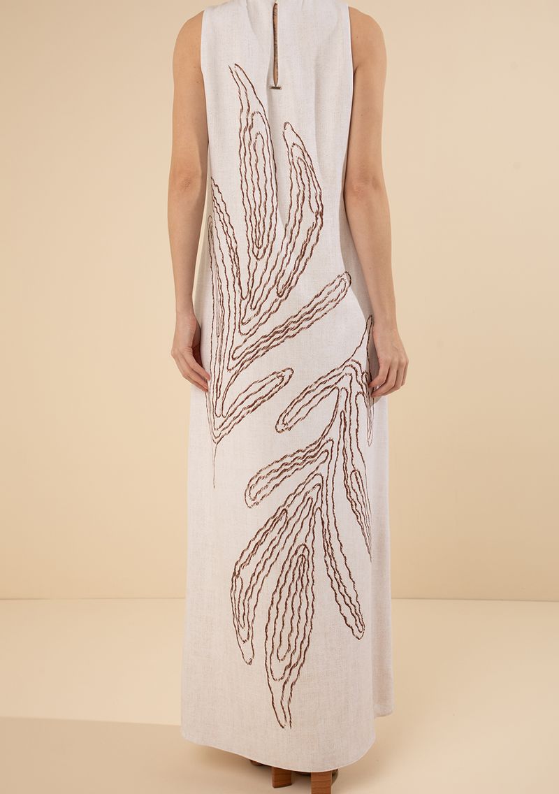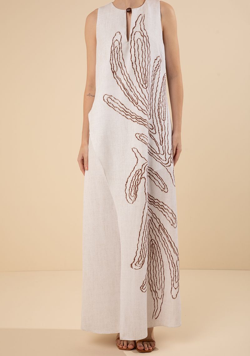 FemininoRoupasVestidosVestido Morena Rosa Solto Decote Careca Sem Manga Longo Bege