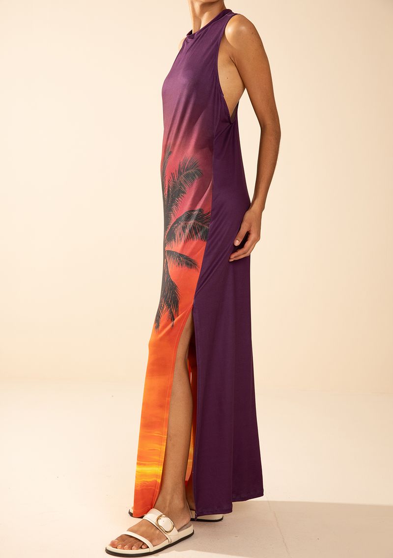 Vestido Morena Rosa Solto Decote Careca Sem Manga Longo Laranja