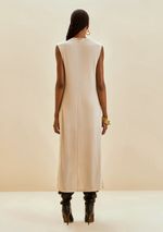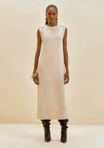 Vestido Morena Rosa Solto Decote Careca Sem Manga Midi Bege